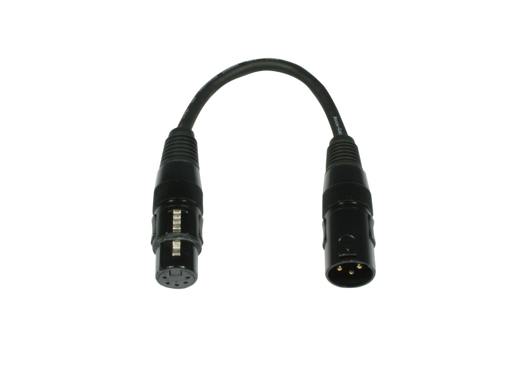 - Přechodka z 3pin XLR male na 5pin DMX female. 110 Ohm.