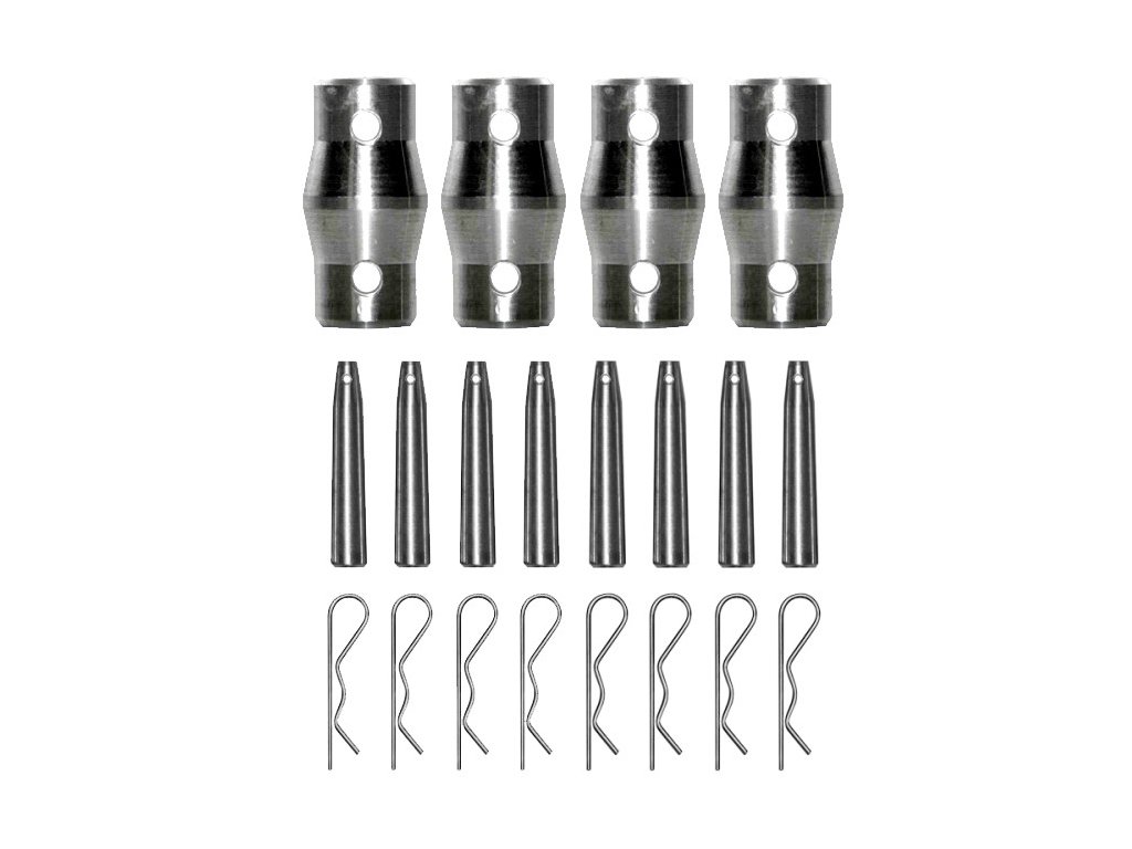 Součást balení: 4 kužely, 8 ocelových kolíků, 8 bezpečnostních klipů