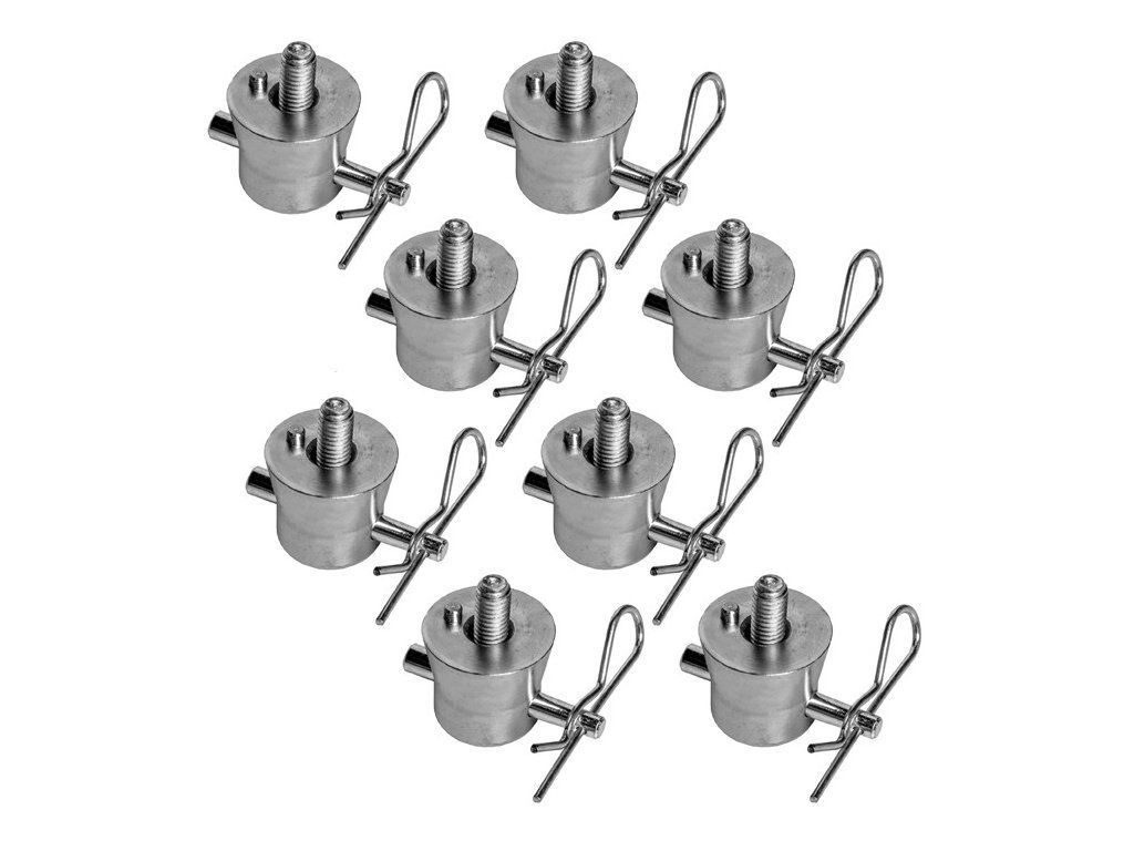 Součást balení: 8× poloviční kužel, 8× ocelový čep, 8× pojistná spona, 8× šroub M8