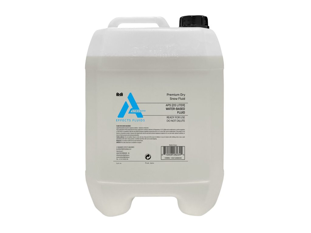 APS - Premium Dry Snow Fluid (20l): Kapalina Atmosity, určená pro sérii Elation Magmatic Polar (lze ji ale použít i pro většinu jiných výrobníků umělého sněhu). Hangtime 5-10min.