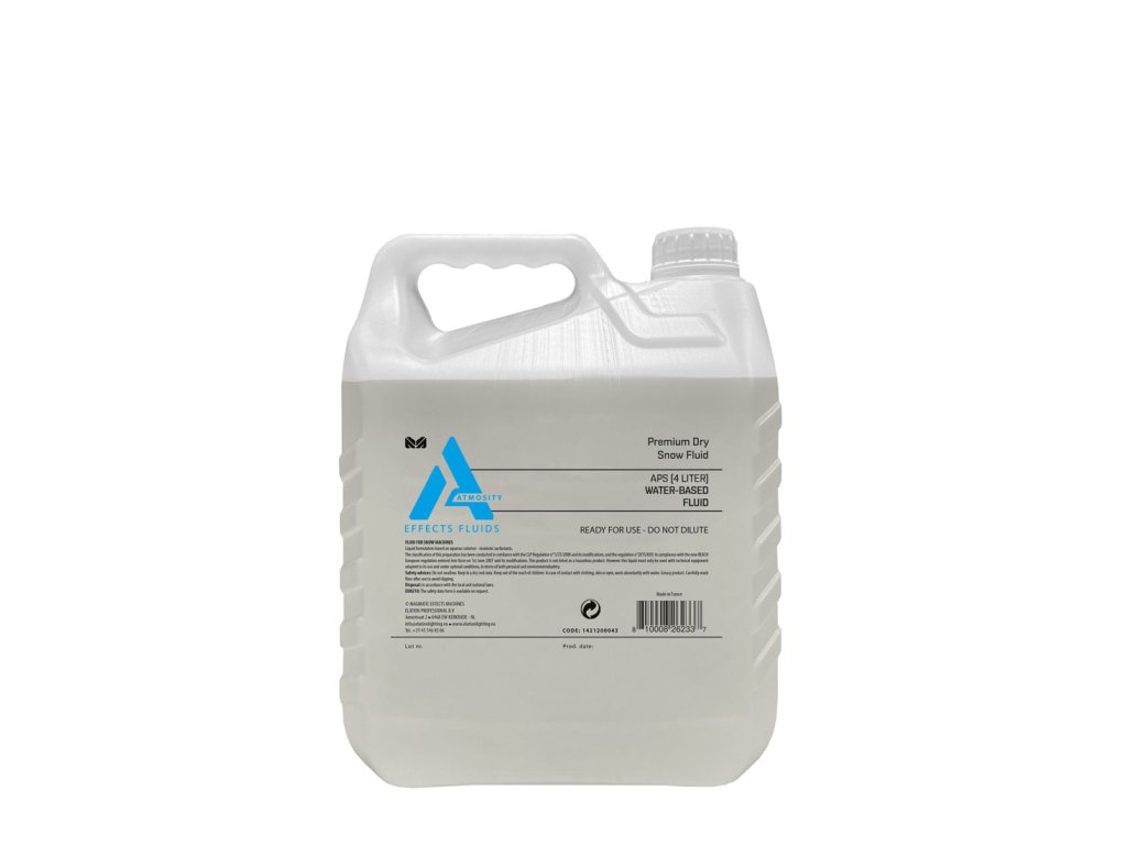 APS - Premium Dry Snow Fluid (4l): Kapalina Atmosity, určená pro sérii Elation Magmatic Polar (lze ji ale použít i pro většinu jiných výrobníků umělého sněhu). Hangtime 5-10min.