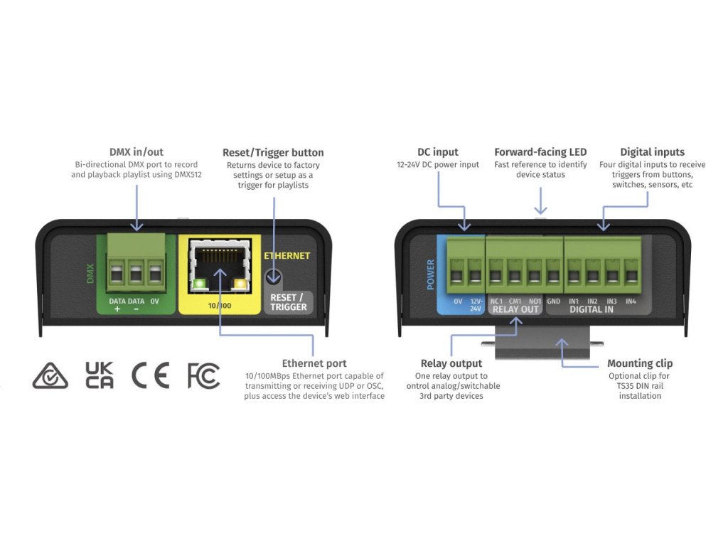 - Robustní a kompaktní show recorder a playback controller který zefektivní vaši světelnou show bezproblémovou integrací externího hardwaru