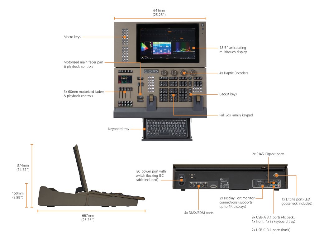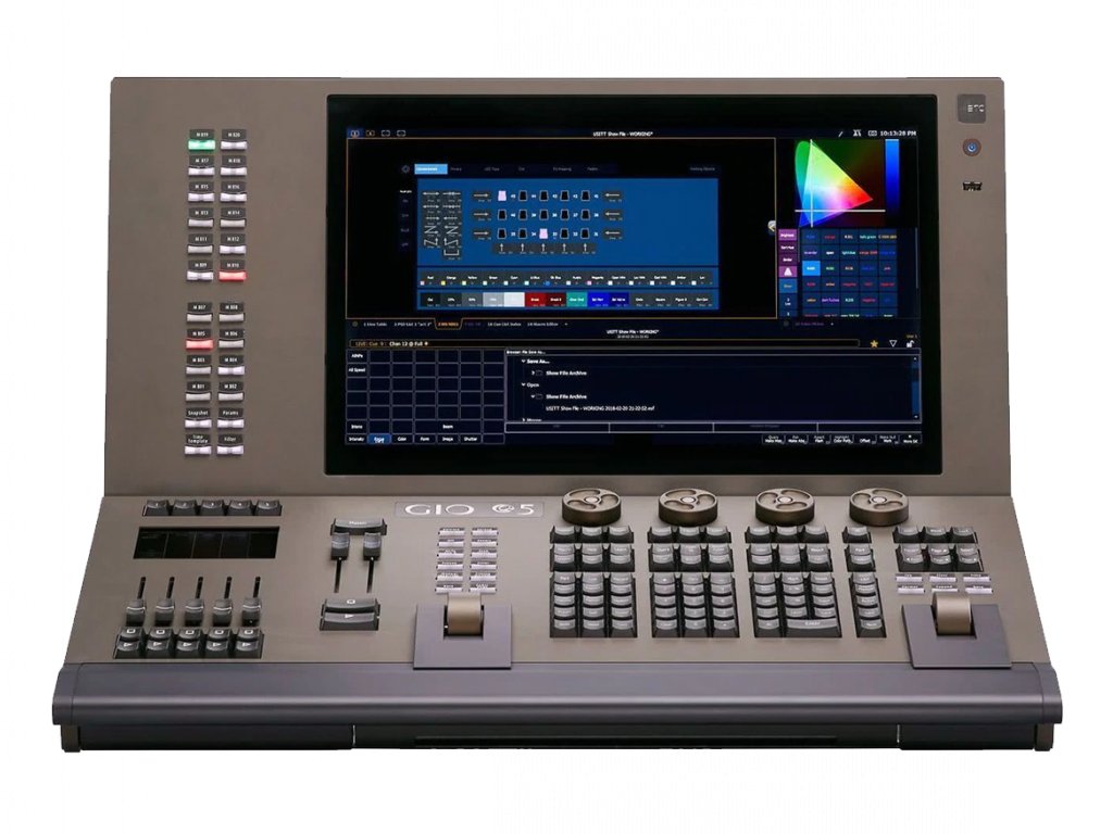 - 100x 10-fader stránek konfigurovatelné jako kanály, submastery, palety/presety, timing a effect rate/speed playback control