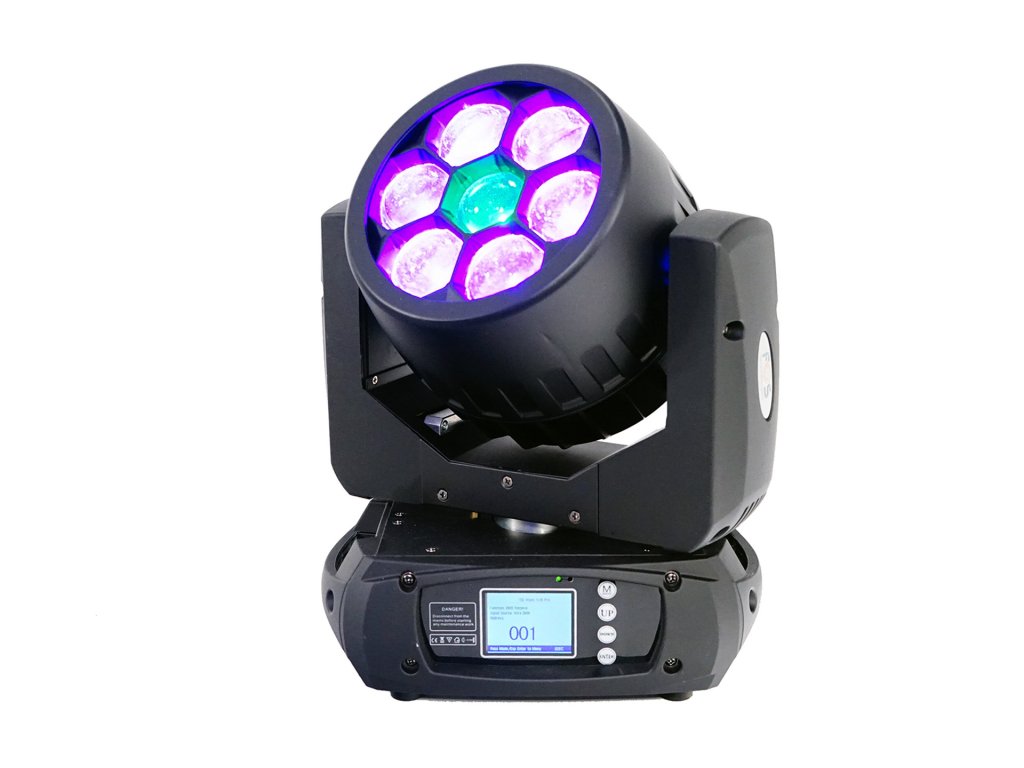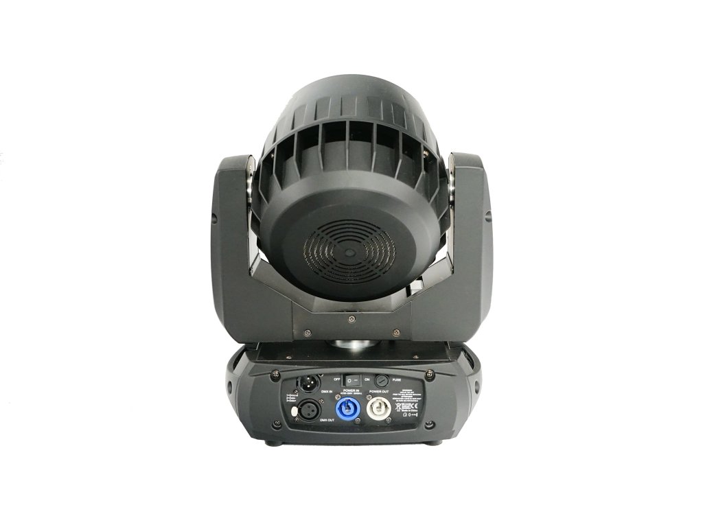 - LED pohyblivá hlava, která kombinuje typ beam a wash