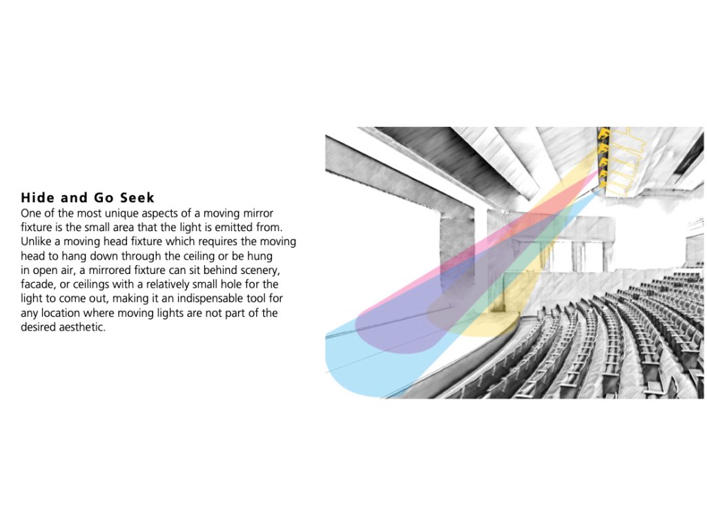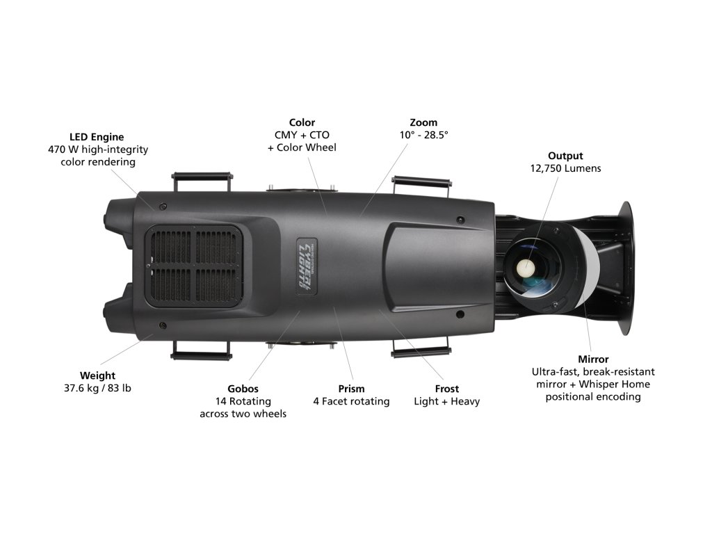 technologií vysokorychlostního otáčení a naklápění. Svítidlo je ideální ke skrytí v trvalých instalacích. Svítidlo disponuje LED diodou s výkonem 470 W Bright-White a vysoce kvalitním optickým systémem, který poskytuje 12 750 lumenů s CRI 90+ pro vynikající schopnost podání barev.