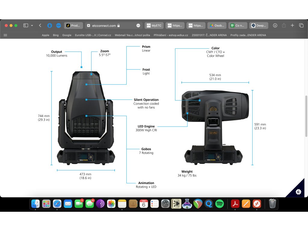 - 300 W engine s vysokým CRI produkující 10 000 lumenů