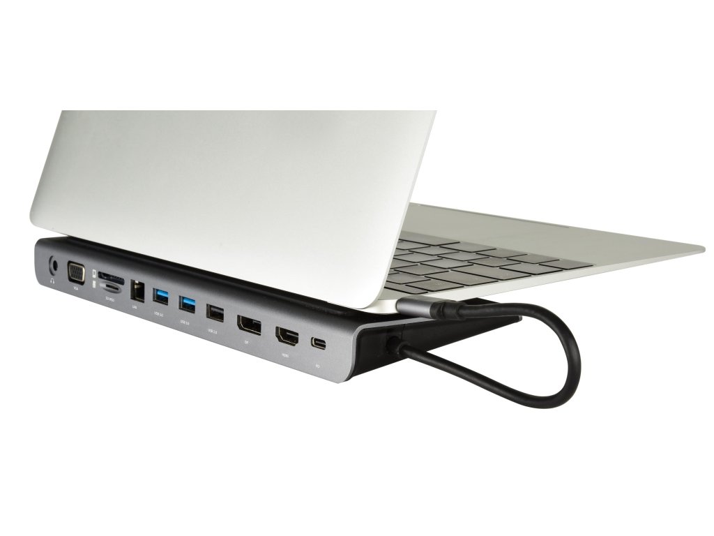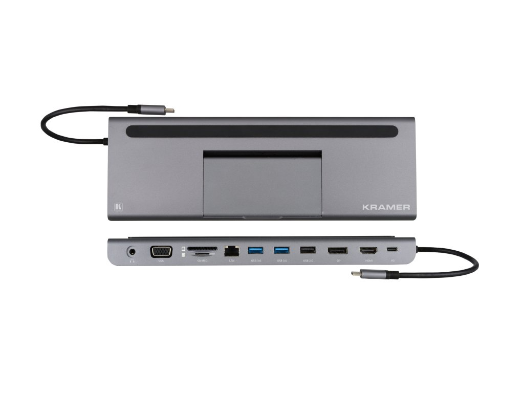KDock-4 je víceportový adaptér s rozbočovačem USB-C speciálně navržený pro podporu mobilních zařízení a je ideálním příslušenstvím pro MacBook, notebooky vybavené USB typu C, chytré telefony a tablety. KDock-4 umožňuje připojit zařízení s USB-C k videovýstupům HDMI™, DisplayPort a VGA, 2 portům USB 3.0, 1 portu USB 2.0, portu Ethernet, portu pro karty SD a micoSD a průchozímu portu USB-C pro nabíjení.