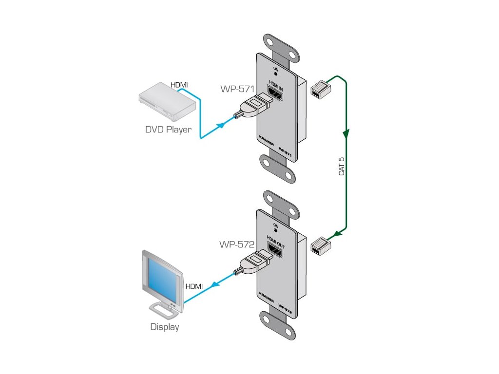 Integrace signálů DGKat™ - jedinečná technologie společnosti Kramer pro převod TMDS i ovládání a komunikace na signály, které jsou vedeny po kroucené dvojlince.