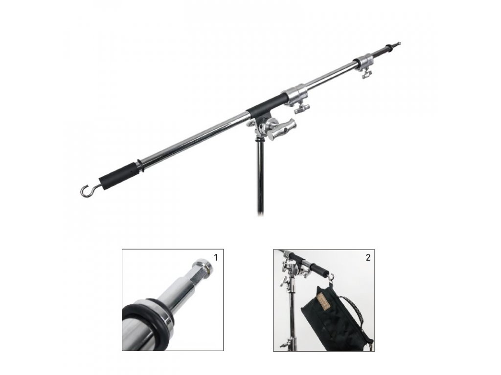- This boom arm can be used to position reflectors, flash heads, screens, tungsten lights and muslin backdrops.