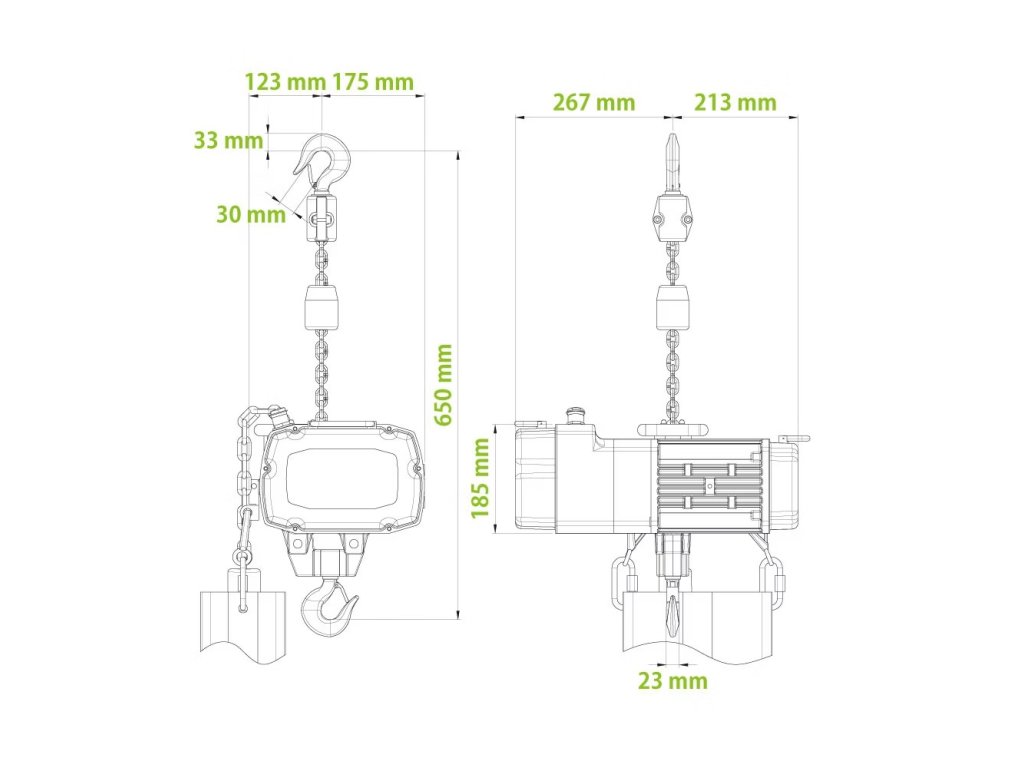- Standardně dodáváme s 20m řetězem ale je možno upravit na libovoulnou délku dle přání zákazníka