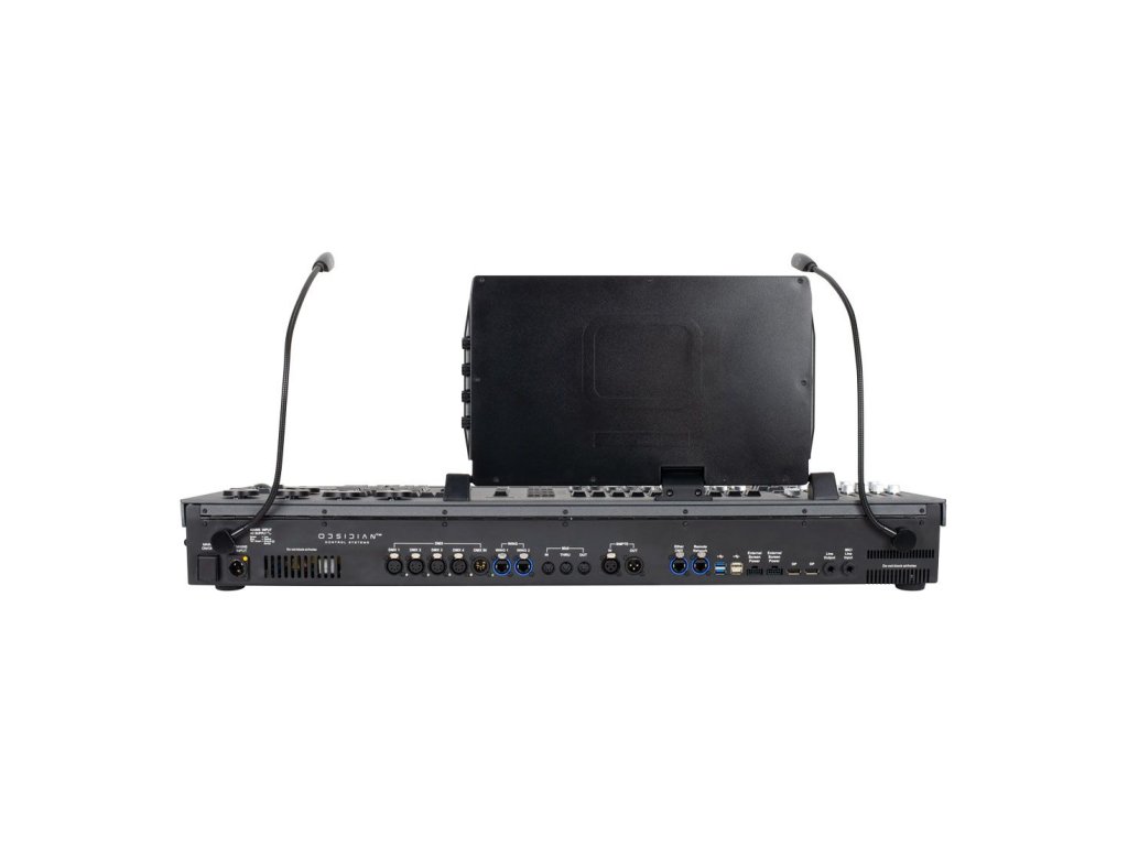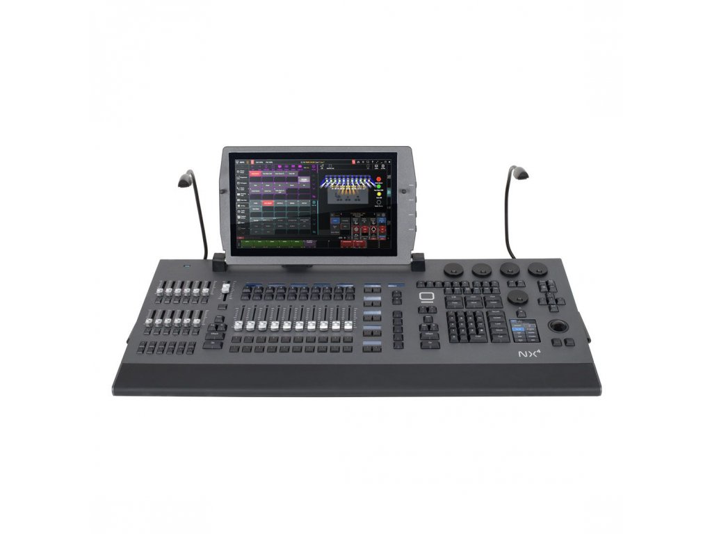 Obsahuje vysoce jasný full HD multidotykový displej, 8 nastavitelných enkodérů, Intensity enkodér, pomocný mini dotykový displej, kompletní klávesnici, příkazovou sekci a Grandmaster