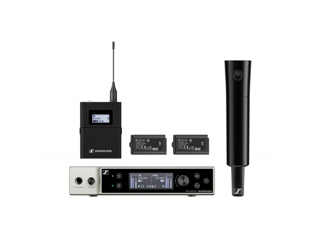 ew-DX SK/SKM je univerzální dvojitý digitální bezdrátový systém s kapesním a ručním vysílačem. Dodává se bez mikrofonů. Ruční vysílač kompatibilní s mikrofonními hlavami MMD, MME, MMK, KK a MM je vybavený přepínačem MUTE pro možnost krátkodobého vypnutí mikrofonu. Kapesní vysílač umožňuje použití všech klopových a hlavpových mikrofonů s konektorem jack 3,5 EW. Na vysílači s e-ink displejem si můžete nastavit frekvenci basového filtru (high-pass) a základní nastaveí citlivosti (trim), všechny ostatní parametry se nastavují na přijímači nebo z mobilu či tabletu v aplikaci Smart Assist.
